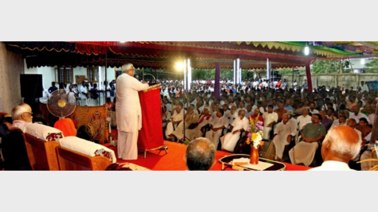 കാര്യാലയ സമര്പ്പണ സമ്മേളനത്തില് സര്കാര്യവാഹ് സുരേഷ് ഭയ്യാജി ജോഷി പ്രഭാഷണം നടത്തുന്നു