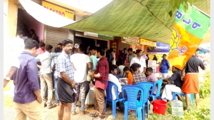 നോട്ട് മാറ്റല്‍ : ജനങ്ങള്‍ക്ക് സഹായ ഹസ്തവുമായി യുവമോര്‍ച്ച പ്രവര്‍ത്തകര്‍