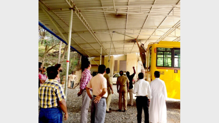ഇരിട്ടി: ഷെഡ്ഡില് നിര്ത്തിയിട്ട സ്കൂള് ബസ്സിനു മുകളില് വൈദ്യുതിലൈന് കത്തിവീണെങ്കിലും തീ ആളിപ്പടരുന്നത് െ്രെഡവറുടെ ബുദ്ധിപൂര്വമായ ഇടപെടലും മനസ്സാന്നിദ്ധ്യവും മൂലം ഒഴിവായി. ഇരിട്ടി കല്ലുമുട്ടിയില് പ്രവര്ത്തിക്കുന്ന സിഎംഐ െ്രെകസ്റ്റ് സ്കൂളിലായിരുന്നു അപകടം. ലൈന് കത്തി ബസ്സിനു മുകളില് വീണ് ആളിപ്പടരുന്നത് കണ്ടയുടനെ െ്രെഡവര് ജീവന് പണയംവെച്ച് ബസ്സിലേക്ക് ഓടിക്കയറി സ്റ്റാര്ട്ട് ചെയ്ത് അപകടസ്ഥലത്തു നിന്നും മാറ്റുകയായിരുന്നു. ഇന്നലെ രാവിലെ ഒമ്പതുമണിയോടെ ആയിരുന്നു അപകടം. സ്കൂളിലേക്ക് വൈദ്യുതി നല്കുന്ന പിവിസി പൈപ്പിനകത്ത് കൂടെ വലിച്ച ത്രീ ഫേസ് സര്വീസ് വയറുകളാണ് കത്തി ബസ്സിനു മുകളിലേക്ക് വീണത്. സ്ഥലത്തുതന്നെയുണ്ടായിരുന്ന െ്രെഡവര് തന്റെ ജീവന് പണയം വെച്ച് ബസ്സിനകത്തേക്ക് ഓടിക്കയറുകയും ഇവിടെ നിന്നും മാറ്റി ഇടുകയുമായിരുന്നു. ഈ സമയം ആറോളം ബസ്സുകള് സ്കൂളിനോട് ചേര്ന്ന ഷെഡ്ഡില് ഉണ്ടായിരുന്നു. െ്രെഡവറുടെ ബുദ്ധിപൂര്വമായ പ്രവര്ത്തനം മൂലം വന് തീപിടുത്തം ഒഴിവാക്കാനായി. വിവരമറിയിച്ചതിനെത്തുടര്ന്ന് ഇരിട്ടിയില് നിന്നും രണ്ടു യൂനിറ്റ് അഗ്നിശമന സേനയും പോലീസും സ്ഥലത്തെത്തി. ഷോര്ട്ട് സര്ക്യൂട്ടാണ് തീപ്പിടുത്തത്തിനു കാരണമെന്നാണ് അറിയുന്നത്. അതേസമയം സര്വീസ് വയറുകള് പിവിസി പൈപ്പിനകത്ത് കൂടെ വലിക്കാന് പാടില്ലെന്ന നിയമമുണ്ടെന്നും ഇത് ഇവിടെ ലംഘിക്കപ്പെട്ടിട്ടുണ്ടെന്നും ആരോപണമുണ്ട്.