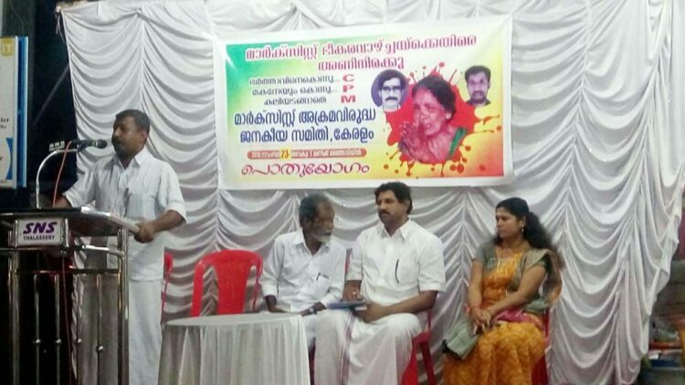 തലശ്ശേരി: മാര്ക്സിസ്റ്റ് അക്രമവിരുദ്ധ ജനകീയ സമിതിയുടെ നേതൃത്വത്തില് മഞ്ഞോടിയില് പൊതുയോഗം നടത്തി. ആര്എസ്എസ് വിഭാഗ് കാര്യകാരി സദസ്യന് കെ.സജീവന് മുഖ്യപ്രഭാഷണം നടത്തി. കണ്ണൂര് ജില്ലയില് സമാധാനം പുനഃസ്ഥാപിക്കാന് മുന്കയ്യെടുക്കേണ്ട സിപിഎമ്മാണ് ജില്ലയില് നടക്കുന്ന അക്രമങ്ങളിലെല്ലാം ഒരു ഭാഗത്ത് നിലകൊളളുന്നതെന്ന് അദ്ദേഹം പറഞ്ഞു. സിപിഎം ഒരു ഭാഗത്തും സിപിഎമ്മിനെതിരായി ശബ്ദിക്കുന്ന രാഷ്ട്രീയ പാര്ട്ടികളും പൊത പ്രവര്ത്തകരും മാധ്യമ പ്രവര്ത്തകരും മറുഭാഗത്തുമെന്ന സ്ഥിതിയാണുളളത്. അധികാരത്തില് വന്നശേഷം പോലീസിനേയും ഭരണകൂടത്തേയും ഉപയോഗിച്ചു കൊണ്ട് സിപിഎം നടത്തുന്ന ഭീകരത അവസാനിപ്പിക്കണമെന്ന് അദ്ദേഹം ആവശ്യപ്പെട്ടു. പി.ബാബു അധ്യക്ഷത വഹിച്ചു. ബിജെപി ജില്ലാ സെക്രട്ടറി എന്.ഹരിദാസ് പ്രസംഗിച്ചു. എടത്തട്ട ബാബു സ്വാഗതവും സ്മിത ജയമോഹന് നന്ദിയും പറഞ്ഞു.