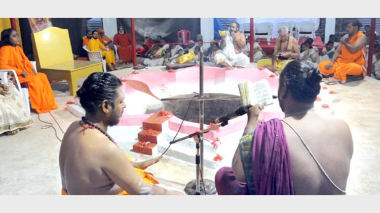 ഇന്നലെ പുലര്‍ച്ചെ ബാലഗണപതിഹോമത്തോടെയാണ് ഹോമകുണ്ഠത്തില്‍ അഗ്നിജ്വലിപ്പിച്ചത്. കാസര്‍ ഗോഡ് ഇളനീര്‍മഠം മഠാധിപതി സ്വാമി കേശവാനന്ദ ഭാരതി ധ്വജാരോഹണം നടത്തി. സാമൂതിരി ഉണ്ണിഅനുജന്‍ രാജ, സീമാജാഗരണ്‍ മഞ്ച് ദേശീയ സംയോജകന്‍ എ. ഗോപാലകൃഷ്ണന്‍, സ്വാമി വിശ്വരൂപാനന്ദ സരസ്വതി, പാലാഞ്ചേരി സുബ്രഹ്മണ്യന്‍ നമ്പൂതിരി, യജ്ഞാചാര്യന്‍ പ്രണവാനന്ദ സരസ്വത്യവധൂത സ്വാമികള്‍ തുടങ്ങിയവര്‍ സന്നിഹിതരായിരുന്നു. വൈകീട്ട് നടന്ന സാം സ്‌കാരിക സദസ്സ് കണ്ണൂര്‍ അമൃതാനന്ദമയീമഠം മഠാധിപതി സ്വാമി അമൃതകൃപാനന്ദപുരി ഉദ്ഘാടനം ചെയ്തു. അഡ്വ. ഗോവിന്ദ് കെ. ഭരതന്‍ അധ്യക്ഷത വഹിച്ചു. ബ്രഹ്മചാരി മുകുന്ദചൈതന്യ, പ്രൊഫ. കെ.എം. പ്രിയദര്‍ശന്‍ ലാല്‍ എന്നിവര്‍ സംസാരിച്ചു. ഒ.പി. ഉണ്ണി സ്വാഗതവും വി.അശ്വിന്‍മേനോന്‍ നന്ദിയും പറഞ്ഞു.