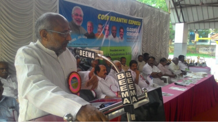 ആലപ്പുഴയില്‍ കയര്‍ ക്രാന്തി എക്‌സ്പ്രസിനു നല്‍കിയ സ്വീകരണത്തില്‍ കയര്‍ ബോര്‍ഡ് ചെയര്‍മാന്‍ സി.പി. രാധാകൃഷ്ണന്‍ സംസാരിക്കുന്നു