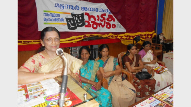മട്ടന്നൂര്: ജയകേരളയുടെ തിലകന് സ്മാരക സംസ്ഥാന പ്രൊഫഷണല് നാടക മത്സരത്തിന്റെ ഭാഗമായി നടത്തിയ വനിതാസന്ധ്യ ഡോ. സുചിത്ര സുധീര് ഉദ്ഘാടനം ചെയ്തു. നഗരസഭാ വൈസ്ചെയര് പേഴ്സണ് കെ.ശോഭന അധ്യക്ഷത വഹിച്ചു. പി.വി.ധനലക്ഷ്മി, അനിത വേണു, പി.വി.ഗിരിജ, സി.പ്രസീത എന്നിവര് സംസാരിച്ചു. സിനിമയുടെ അണിയറ പ്രവര്ത്തകരുടെ സംഗമം സംവിധായകന് രാജീവ് നടുവനാട് ഉദ്ഘാടനം ചെയ്തു. സുരേന്ദ്രന് കല്ലൂര് അധ്യക്ഷനായി. പ്രദീപ് കേളോത്ത്, അനില് പരിയാരം, സനില് മട്ടന്നൂര്, സതീഷ് കൊതേരി, ശശിധരന് മട്ടന്നൂര്, ജോയ് തോമസ്, ബേബി ഗാന്ധാര എന്നിവര് സംസാരിച്ചു. തിരുവനന്തപുരം ശ്രീനന്ദനയുടെ കടലുകള് കടന്ന് നാടകം അരങ്ങേറി. ഇന്ന് വൈകിട്ട് കവിതാ സായാഹ്നം കാരായി ശ്രീധരന് ഉദ്ഘാടനം ചെയ്യും. എഴിന് ഓച്ചിറ സരിഗയുടെ ഭ്രമണം നാടകം അരങ്ങേറും.