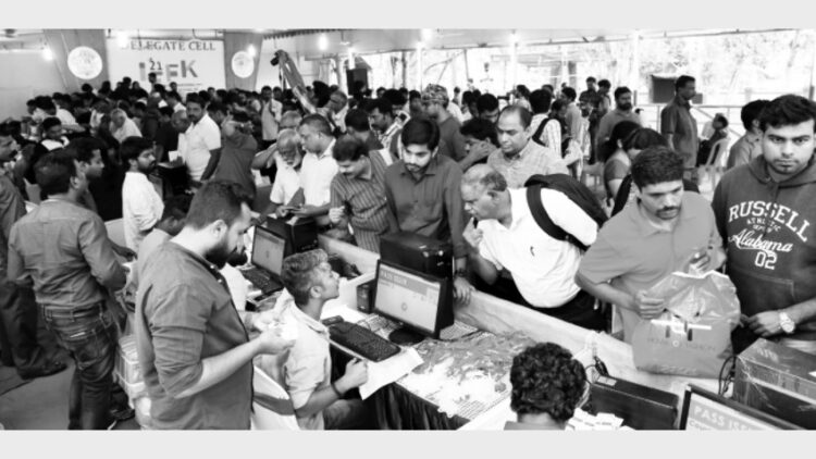 ചലച്ചിത്രോത്സവത്തിന്റെ ഡെലിഗേറ്റീവ് പാസ് ഫെസ്റ്റിവല് ഓഫീസില് നിന്നും വാങ്ങാനെത്തിയവരുടെ തിരക്ക്