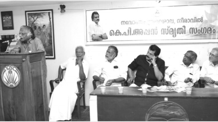 കൊല്ലം: മലയാള വിമര്ശന സാഹിത്യത്തിലെ സൃഷ്ടാവായ നിരൂപകനായിരുന്നു കെ.പി.അപ്പനെന്ന് ശ്രീകുമാരന് തമ്പി. നീരാവില് നവോദയം ഗ്രന്ഥശാലയില് നടന്ന സ്മൃതിസംഗമം ഉദ്ഘാടനം ചെയ്യുകയായിരുന്നു അദ്ദേഹം. ക്ഷോഭം എന്ന വികാരത്തിന് ഒരിക്കലും കീഴ്പ്പെടാത്ത പക്വമതിയായ കലാലയ സഹപാഠിയും ഉറ്റമിത്രവുമായിരുന്നു അപ്പനെന്ന് ശ്രീകുമാരന്തമ്പി അനുസ്മരിച്ചു. എടുത്തുചാട്ടക്കാരനും വളച്ചുകെട്ടില്ലാതെ വര്ത്തമാനം പറയുകയും ചെയ്തിരുന്ന സുഹൃത്തായിരുന്നു അദ്ദേഹം. ഞങ്ങള് തമ്മിലുള്ള സൗഹൃദം വായനയിലൂടെയും സാഹിത്യസംവാദങ്ങളിലൂടെയും തിടം വച്ച് ദൃഡമായതാണ്. തുടക്കനാളില് അതിമനോഹരമായ കഥകള് എഴുതിയായിരുന്നു അപ്പന്റെ സാഹിത്യ പ്രവേശനം. മനസ്സില് പല അറകളുള്ള വ്യക്തിത്വമായിരുന്നു അപ്പന്റേത്. പറയേണ്ട സമയത്ത് പറയേണ്ടത് മാത്രം ആലോചിച്ച് പറയുന്നതായിരുന്നു ശീലമെന്നും ശ്രീകുമാരന് തമ്പി പറഞ്ഞു. ചടങ്ങില് പ്രൊഫ.കെ.ജയരാജന് രചിച്ച കെ.പി. അപ്പന് എന്ന കൃതിയുടെ പ്രകാശനം എം.മുകേഷ് എംഎല്എ ആദ്യപ്രതി നല്കി ശ്രീകുമാരന്തമ്പി നിര്വ്വഹിച്ചു. പ്രദീപ് പനങ്ങാട് പുസ്തകം പരിചയപ്പെടുത്തി. അപ്പന് കൃതികളുടെ പ്രദര്ശനോദ്ഘാടനം മേയര് വി.രാജേന്ദ്രബാബു ഉദ്ഘാടനം ചെയ്തു. പത്നി ഓമന, അനുജന് കെ.പി.സി. ദാസ്, ഗ്രന്ഥശാല സെക്രട്ടറി എസ്.നാസര്, എസ്. ശശിധരന്പിള്ള എന്നിവര് സംസാരിച്ചു. ഗ്രന്ഥശാല പ്രസിഡന്റ് ബേബി ഭാസ്കര് അദ്ധ്യക്ഷനായിരുന്നു.