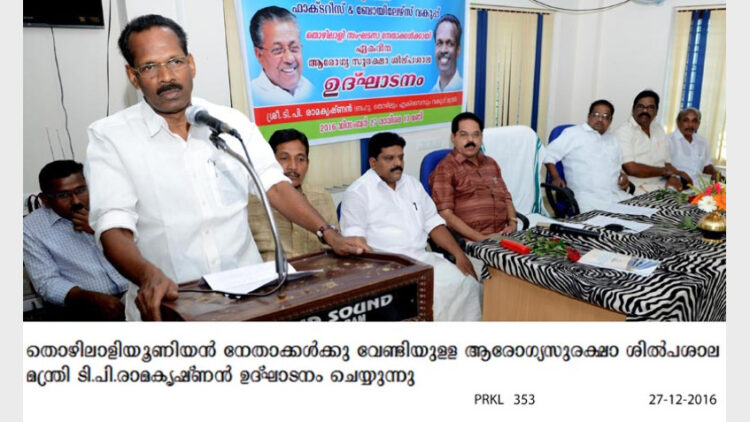 പരിപാടിയില് ബിഎംഎസ് സംസ്ഥാന ഉപാധ്യക്ഷന് ശിവജി സുദര്ശനന്, സിഐടിയു ജില്ലാ സെക്രട്ടറി എസ്.സുദേവന്, ചെങ്ങറ സുരേന്ദ്രന്, കെ.എസ്.ഇന്ദുശേഖരന്, ടി.കെ.സുല്ഫി, കെമിക്കല് ഇന്സ്പെക്ടര് സിയാദ്, കെ.ജയചന്ദ്രന് തുടങ്ങിയവര് സംസാരിച്ചു.