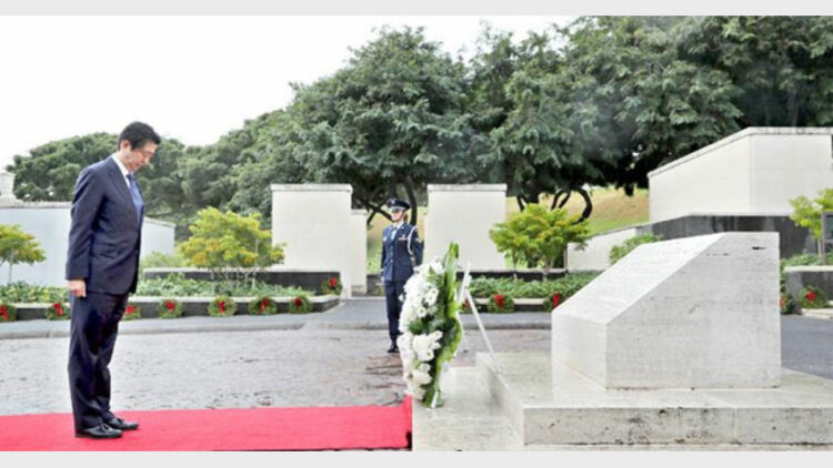 പേള്‍ഹാര്‍ബര്‍ രക്തസാക്ഷികളുടെ സ്മാരകത്തില്‍ ഷിന്‍സോ ആബെ ആദരാജ്ഞലി അര്‍പ്പിച്ചു. രക്തസാക്ഷികളുടെ ബന്ധുക്കളും സുഹൃത്തുക്കളും ചടങ്ങിന് സാക്ഷ്യം വഹിക്കാനെത്തിയിരുന്നു.