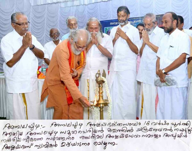 അമൃതകീര്‍ത്തി പുരസ്‌ക്കാര ജേതാവ് ഡോ. അമ്പലപ്പുഴ ഗോപകുമാര്‍ മുഖ്യപ്രഭാഷണം നടത്തി. അമ്പലപ്പുഴ അയ്യപ്പഭക്തസംഘം സെക്രട്ടറി എന്‍. മാധവന്‍ കുട്ടി നായര്‍ സ്വാഗതം പറഞ്ഞു. പ്രസിഡന്റ് എന്‍. ഗോപാലകൃഷ്ണ പിള്ള അദ്ധ്യക്ഷത വഹിച്ച ചടങ്ങില്‍ ഗ്രാമ പഞ്ചായത്തംഗം സുഷമാ രാജീവ്, ബി. ശ്രീകുമാര്‍, റ്റി.എച്ച്. ഷംസുദ്ദീന്‍ തുടങ്ങിയവര്‍ സംസാരിച്ചു.