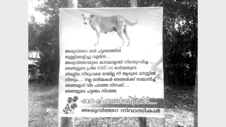 പത്തനാപുരം: അരുവിത്തറ ഗ്രാമത്തിന്റെ ഹൃദയം കവര്‍ന്ന റാണി എന്ന തെരുവ്‌നായ മരണത്തിനു കീഴടങ്ങി. ഒരിക്കലും മറക്കാനാവാത്ത ഒരുപിടി നല്ല ഓര്‍മ്മകള്‍ ഗ്രാമവാസികള്‍ക്ക് സമ്മാനിച്ചുകൊണ്ടാണ് ആ വിയോഗം.