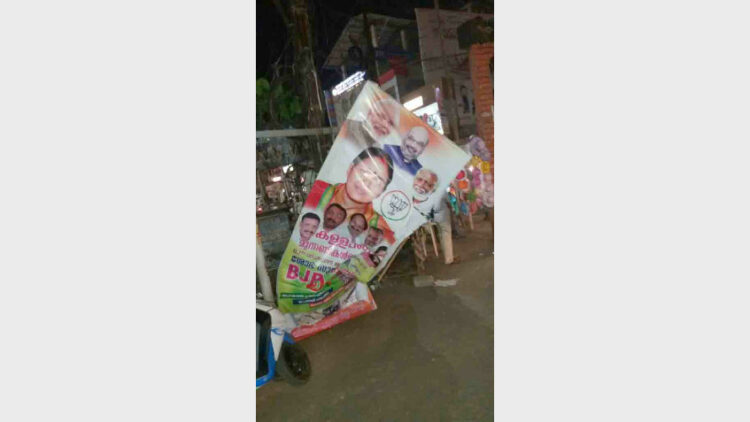 ഡിവൈഎഫ്ഐക്കാര് നശിപ്പിച്ച ബിജെപി പ്രചാരണ ബോര്ഡ്