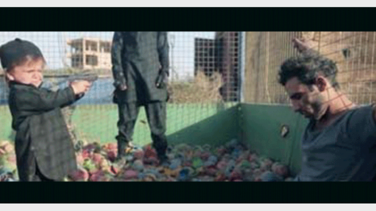 ഒരു കുഴിയില്‍ കെട്ടിയിട്ടിരിക്കുന്ന തടവുപുള്ളിയുടെ അടുത്തേക്ക് കുട്ടി നടന്നുവരുന്നതും ഒരാള്‍ അവന്റെ കൈയില്‍ തോക്കു നല്‍കുന്നതും ഒരു സെക്കന്റു പോലും പാഴാക്കാതെ അവന്‍ തടവുകാരനെ വെടിവച്ചുകൊല്ലുന്നതുമാണ് വീഡിയോയില്‍.