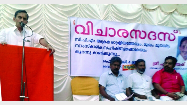 മാള: കേരളത്തില് മാര്ക്സിസ്റ്റ് അക്രമത്തിനെതിരെ ജനമുന്നേറ്റംവേണമെന്ന് ബിജെപി സംസ്ഥാന ജനറല് സെക്രട്ടറി എം. ടി. രമേശ്. മാളയില് സാംസ്കാരിക വിചാരസദസ് ഉദ്ഘാടനം ചെയ്തു സംസാരിക്കുകയായിരുന്നു അദ്ദേഹം. കൂടെ നില്ക്കുന്ന സിപിഐ യുടെ പ്രവര്ത്തകരെ പോലും ആക്രമിക്കുകയാണ് സിപിഎം. വി.ഡി. അംബുജാക്ഷന് അദ്ധ്യക്ഷത വഹിച്ചു എം.ജി. പ്രശാന്ത് ലാല്, ജിജീഷ് അശോകന് എന്നിവര് സംസാരിച്ചു.