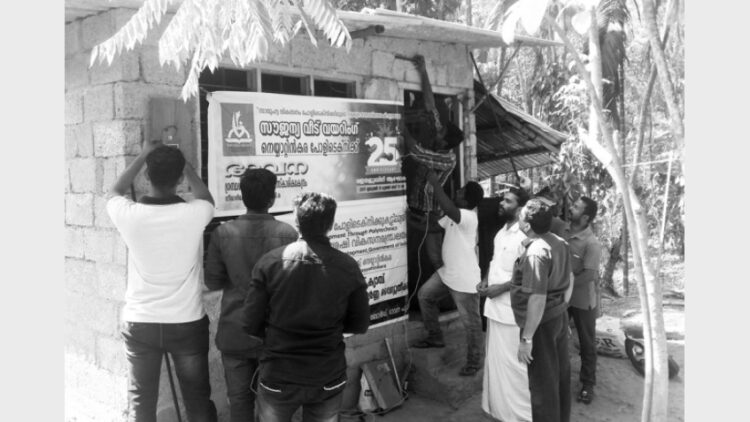 വയറിംഗ് ജോലികളില് ഏര്പ്പെട്ടിരിക്കുന്ന ഭാവനയിലെ പ്രവര്ത്തകര്