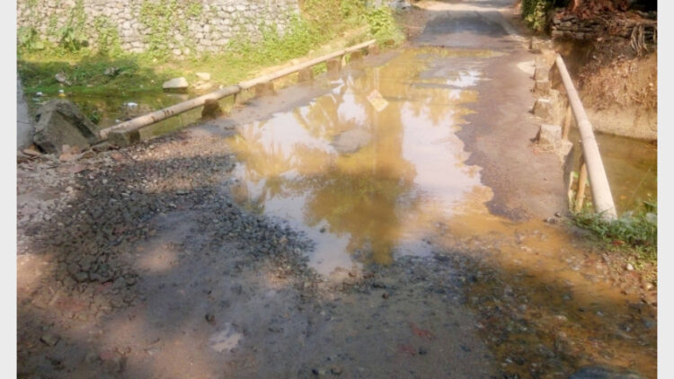 ഇതിന് നേരെ എതിര്വശത്തായി വീട്ടിലേക്കുള്ള സ്റ്റെപ്പ് നിര്മ്മാണത്തിന്റെ ഭാഗമായി മണ്ണെടുത്ത സ്ഥലത്തൂടെയാണ് വെള്ളം ഒഴുകുന്നത്. ശക്തമായുള്ള വെള്ള ഒഴുക്കില് കഴിഞ്ഞ തവണ റോഡ് പൂര്ണ്ണമായും തകര്ന്നിരുന്നെങ്കിലും പാലത്തിന് മുകളിലൂടെ വളരെ കുറച്ച് വെള്ളമാണ് ഒഴുകിയിരുന്നതെന്ന് നാട്ടുകാര് പറയുന്നു. തകര്ന്ന റോഡിന്റെ കുറച്ച് ഭാഗം നാട്ടുകാര് പിരിവിട്ട് കോണ്ക്രീറ്റ് ചെയ്തതൊഴിച്ചാല് അധികൃതര് യാതൊരു നടപടിയും എടുത്തിരുന്നില്ല.