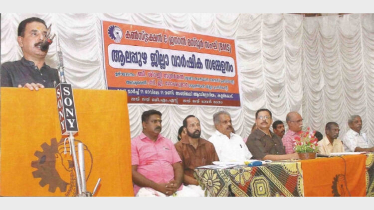 ജില്ലാ കണ്സ്ട്രക്ഷന് ആന്ഡ് ജനറല് മസ്ദൂര് സംഘ്(ബിഎംഎസ്) ജില്ലാ വാര്ഷിക സമ്മേളനം ഫെഡറേഷന് സംസ്ഥാന ജന. സെക്രട്ടറി കെ.എന്. വിജയന് ഉദ്ഘാടനം ചെയ്യുന്നു