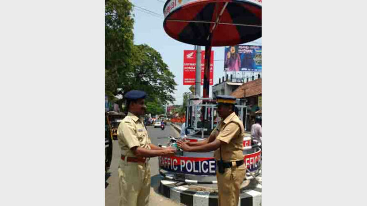 ആലപ്പുഴ: പൊള്ളുന്ന വെയിലില് ജോലിയെടുക്കുന്ന പോലീസുകാര്ക്ക് ആശ്വാസവുമായി ഇനി സൗജന്യമായി കുടിവെള്ളം നല്കും. കനത്ത ചൂടില് ട്രാഫിക്ക്, ഉത്സവ ഡ്യൂട്ടികള് ചെയ്യുന്ന സേനാംഗങ്ങള്ക്ക് ആവശ്യമായ കുടിവെള്ളം നല്കുന്ന പദ്ധതിക്ക് തുടക്കമായി. സംസ്ഥാനത്തെ പകല് താപനില വര്ദ്ധിച്ചിരിക്കുന്ന സാഹചര്യത്തില് കടുത്ത ചൂടില് ജോലിചെയ്യുന്ന സേനാംഗങ്ങള്ക്ക് സൂര്യഘാതം ഉള്പ്പടെയുളള ആരോഗ്യപ്രശ്നങ്ങള്ക്ക് പരിഹാരമായാണ് കുടിവെള്ളം നല്കാന് തീരുമാനിച്ചത്. ആലപ്പുഴ പോലീസ് സബ്ബ് ഡിവിഷനിലെ ഉത്ഘാടനം ആലപ്പുഴ ഡെപ്യൂട്ടി പോലീസ് സൂപ്രണ്ട് എം.ഇ. ഷാജഹാന് ആലപ്പുഴ ടൗണില് ട്രാഫിക്ക് ഡ്യൂട്ടി ചെയ്യുന്ന സേനാംഗങ്ങള്ക്ക് കുടിവെള്ളം നല്കി നിര്വ്വഹിച്ചു.