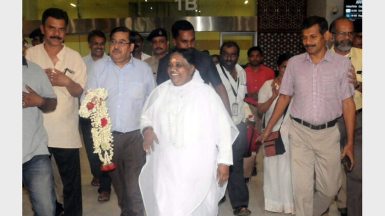 മലേഷ്യ, സിംഗപ്പൂര്, ഓസ്ട്രേലിയ തുടങ്ങിയ രാജ്യങ്ങളില് കഴിഞ്ഞ മൂന്നാഴ്ചക്കാലത്തെ പര്യടനത്തിന് ശേഷമാണ് അമ്മ കൊച്ചിയില് എത്തിയത്. സ്വാമി പൂര്ണ്ണാമൃതാനന്ദപുരിയുടെ നേതൃത്വത്തിലായിരുന്നു വിമാനത്താവളത്തില് സ്വീകരണം. സ്വാമി അമൃത സ്വരൂപാനന്ദപുരി, സ്വാമി അമൃതാത്മാനന്ദപുരി, സ്വാമി രാമകൃഷ്ണാനന്ദപുരി, സ്വാമിനി കൃഷ്ണാമൃത പ്രാണാ തുടങ്ങിയവരും അമ്മയോടൊപ്പമുണ്ട്. ഇന്നും നാളെയുമാണ് ബ്രഹ്മസ്ഥാന ഉത്സവം.