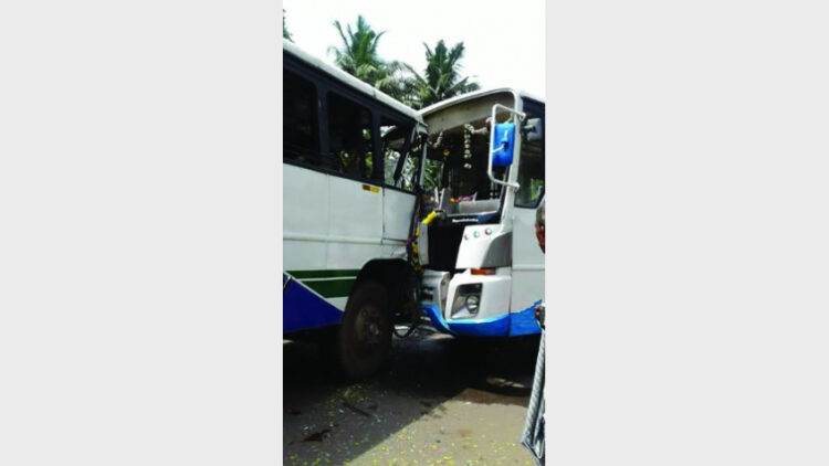 അഞ്ചല്: ചിതറ കല്ലുവെട്ടാംകുഴി കോളനിയ്ക്കു സമീപം സ്വകാര്യ ബസുകള് കൂട്ടിയിടിച്ച് നിരവധി പേര്ക്ക് പരിക്കേറ്റു. കടയ്ക്കലില് നിന്ന് കല്ലറയിലേക്കു പോയ സ്വകാര്യ ബസും കല്ലറയില് നിന്നും കടയ്ക്കലേക്കു പോയ സ്വകാര്യ ബസുമാണ് അപകടത്തില്പ്പെട്ടത്.