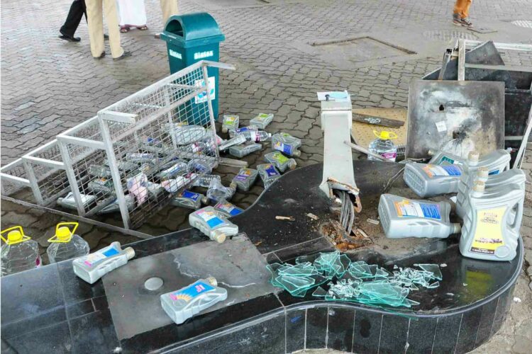 കാറിടിച്ചു തകര്‍ന്ന പെട്രോള്‍ പമ്പിലെ ബില്ലിങ് പോയിന്റ്