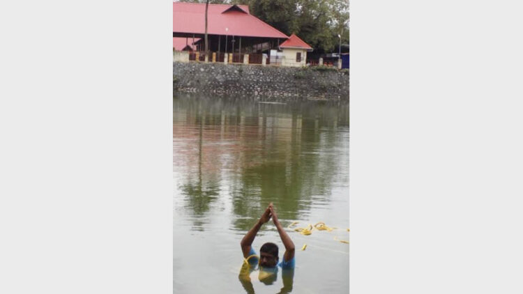 വിവിധ ഹൈന്ദവ സംഘടനാനേതാക്കളായ അവണൂര് രമേശ്, രജ്ഞിത്ത് എന്നിവരുടെ നേതൃത്വത്തിലായിരുന്നു കൂടുതല് പേര് കുളത്തിലേക്ക് ഇറങ്ങിയത്.