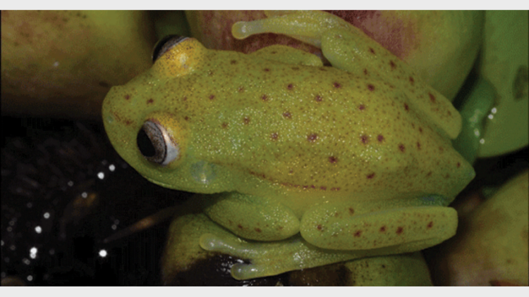 വാഷിങ്ടണ്‍; പച്ചയും മഞ്ഞയും ഇടക്കിടക്ക് ചുവപ്പും നിറഞ്ഞ, മേലാസകലം പുള്ളിയുള്ള തവള. തെക്കന്‍ അമേരിക്കയില്‍ കണ്ടുവരുന്ന ഇനം മരത്തവള. സന്ധ്യവരെ പുള്ളിക്കാരന് എന്തെങ്കിലും പ്രത്യേകത തോന്നില്ല.