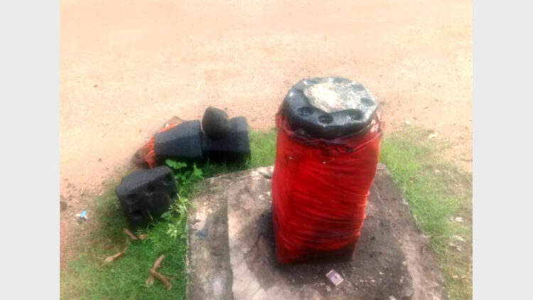 വെട്ടിക്കവല മഹാദേവക്ഷേത്രത്തിലെ കല്‍വിളക്ക് തകര്‍ത്ത നിലയില്‍