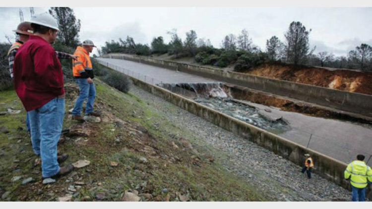 വടക്കന് കാലിഫോര്ണിയയിലെ ഓറോവില്ലെ അണക്കെട്ടിന്റെ സ്പില്വേയിലുണ്ടായ വലിയ ദ്വാരം
