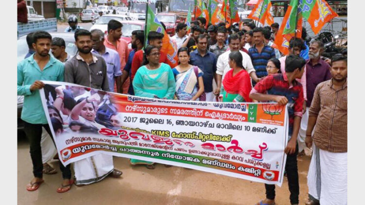 നഴ്‌സുമാര്‍ക്ക് ഐക്യദാര്‍ഢ്യവുമായി യുവമോര്‍ച്ച