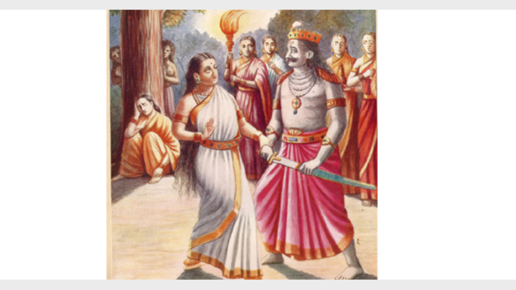 ‘അത് മനുഷ്യരായ നമ്മുടെ മാനദണ്ഡം’- മുത്തശ്ശന് സാന്ത്വനവാക്കോതി: ‘രാക്ഷസര്ക്ക് അതു ബാധകമല്ലാ. സീതയോട് രാക്ഷസിമാര് പറയുന്നതെന്താണ്? ഇഷ്ടപ്പെടുന്നവന് വഴങ്ങാതിരിക്കുന്നതാണ് പാപം. നീ പാപം ചെയ്യുന്നത് ഞങ്ങളുടെ ഈശ്വരനോടാണ്; അതിനുള്ള ശിക്ഷയാണ് അദ്ദേഹം വിധിച്ചത്: വെട്ടിനുറുക്കി, പ്രാതലിനു പരുവപ്പെടുത്തുക…..