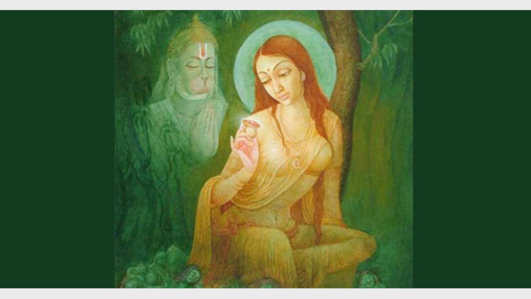 ആരോ വിളിക്കുന്നു: ദേവീ, വൈദേഹീ…ആരാണ്? ദേവി കാതുകൂര്‍പ്പിച്ചു. നിന്ന നില്‍പ്പില്‍ അറിയാതെ നോട്ടം മേലോട്ടുയര്‍ന്നു. അപ്പോഴും കാതിലെത്തുന്നു: വിദിതാത്മാവും ഇഷ്വാകുശ്രേഷ്ഠനുമായ രാമന്റെ ധര്‍മ്മയുക്തവും ശുഭവുമായ ജീവിതകഥ, മധുരമായി വാക്കുകളില്‍… പിതൃവാക്യാനുസരണം സൗമിത്രിയോടും പ്രിയപത്‌നി സീതയോടും കൂടി ദണ്ഡകവനം പ്രാപിച്ച രാമന്‍ പഞ്ചവടിയില്‍ താമസിച്ചതും അവിടെ ആശ്രമത്തില്‍ രാമനില്ലാത്ത സമയം സീത അപഹരിക്കപ്പെട്ടതും സീതാന്വേഷണത്തിനായി വാനരന്മാരെ നാലുദിക്കിലേക്കയച്ചതുമെല്ലാം വിവരിക്കുന്നു-