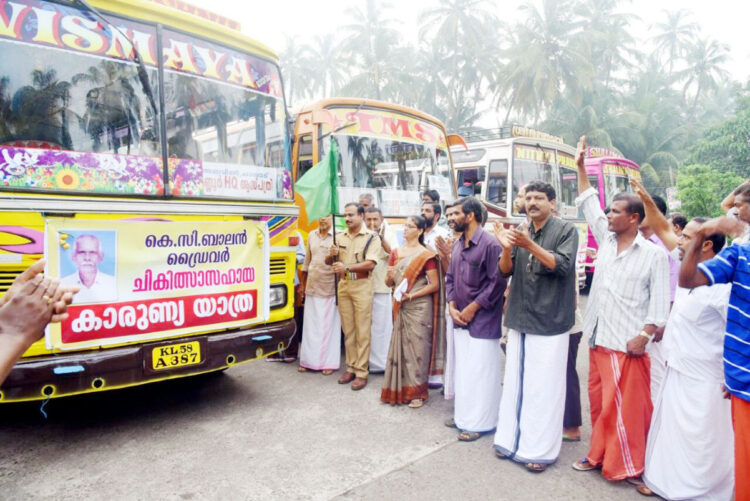 കാരുണ്യയാത്രയുടെ പ്ലാഗ് ഓഫ് കര്മ്മം രാവിലെ 7 മണിക്ക് അഴിക്കല് ബസ്സ്സ്റ്റാന്റില് വച്ച് അഴിക്കോട് പഞ്ചായത്ത് പ്രസിഡണ്ട് സി.പ്രസന്നയുടെ അദ്ധ്യക്ഷതയില് വളപട്ടണം സബ്ബ് ഇന്സ്പെക്ടര് ശ്രിജിത്ത് കോടേരി നിര്വ്വഹിച്ചു. അഴിക്കോട് സര്വ്വിസഹകരണ ബേങ്ക് മുന്ന് നിരത്ത് ഈ വിനിങ്ങ് ബ്രാഞ്ചില് ടആ അ/ര ചീ 2768. ചെയര്മാന് കെ.വി.അശോകന് ഫോണ്. 9567892269, കണ് വിനര് സജിത്ത്കരിക്കന്ഫോണ്: 9446770762