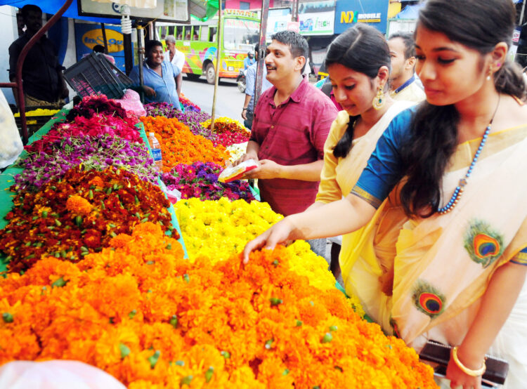 പൂക്കളങ്ങളൊരുക്കാനായ്…..ഓണാഘോഷത്തോടനുബന്ധിച്ച് കണ്ണൂര്‍ നഗരത്തില്‍ വില്‍പ്പനക്കെത്തിയ
