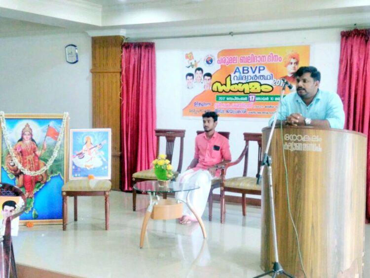 ചക്കരക്കല്: എബിവിപിയുടെ ആഭിമുഖ്യത്തില് പരുമല ബലിദാന അനുസ്മരണവും മാര്ക്സിസ്റ്റ് അക്രമ വിരുദ്ധ വിദ്യാര്ത്ഥി കൂട്ടായ്മയും നടത്തി. ചക്കരക്കല് ഗോകുലം ഓഡിറ്റോറിയത്തില് നടന്ന എബിവിപി ദേശീയ നിര്വാഹക സമിതി അംഗം കെ.രഞ്ജിത്ത് പരിപാടി ഉദ്ഘാടനം ചെയ്തു. ആര്എസ്എസ് വിഭാഗ് കാര്യകാരി സദസ്യന് സജീവന് മാസ്റ്റര് മുഖ്യപ്രഭാഷണം നടത്തി.