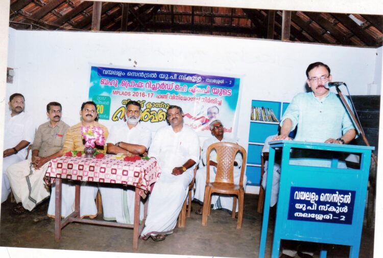 തലശ്ശേരി: 2022-ലെ വികസിത ഇന്ത്യ എന്ന സ്വപ്നസാക്ഷാത്കാരത്തിലെത്താന്‍ സ്‌കൂള്‍തലംതൊട്ട് വിവരസാങ്കേതികവിദ്യയിലൂന്നിയ വിദ്യാഭ്യാസമാണ് രാജ്യത്തിനാവശ്യമെന്ന പ്രൊഫ.റിച്ചാര്‍ഡ് ഹേ എംപി പറഞ്ഞു. വയലളം സെന്‍ട്രല്‍ എല്‍പി സ്‌കൂളില്‍ എംപിഫണ്ട് ഉപയോഗിച്ച് നിര്‍മ്മിച്ച സമാര്‍ട്ട് ക്ലാസ് റൂമിന്റെയും കമ്പ്യൂട്ടര്‍ ലാബിന്റെയും ഉദ്ഘാടനം നിര്‍വ്വഹിച്ച് സംസാരിക്കുകയായിരുന്നു അദ്ദേഹം.