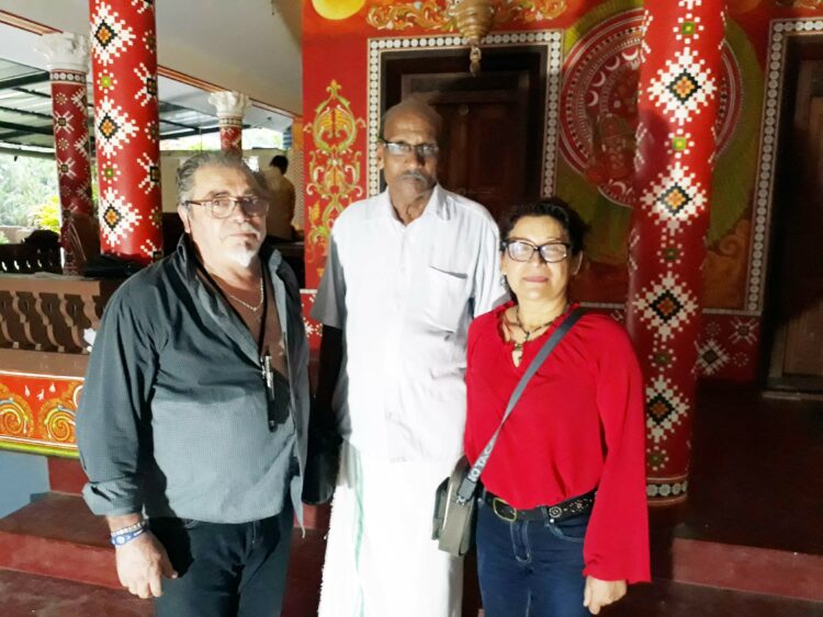 പഴയങ്ങാടി: കലകളുടെ ഈറ്റില്ലമായ ഫ്രാന്സില്നിന്ന് കലാകാരന്മാരായ ജീന് ക്ലോദ് ആന്ഡ്രോയും ഭാര്യ ഹെലന് ആന്ഡ്രോഡും കുഞ്ഞിമംഗലം വല്ലാര്കുളങ്ങറ ഭഗവതികോട്ടത്തില് എത്തി. ഉത്തരകേരളത്തിലെ ഏറ്റവും വലിയ ചുമര്ചിത്ര സാങ്കേതമായ വല്ലാര്കുളങ്ങര ഭഗവതിക്കോട്ടത്തിലെ ചുമര് ചിത്രങ്ങള് ആസ്വദിച്ചാണ് ഇവര് മടങ്ങിയത്. 2015-16 കാലത്താണ് ചുമര്ചിത്രകാരന് കെ.ആര്.ബാബുവിന്റെ നേതൃത്വത്തില് മുപ്പതോളം കലാകാരന്മാര് ചേര്ന്ന് 45 ദിവസം നീണ്ടുനിന്ന ശില്പശാലയില് കോട്ടത്തിലെ ഏഴു തെയ്യരൂപങ്ങളും കാവും നാഗവും വീരാളിപ്പട്ടും മറ്റും വര്ണ്ണ ചിത്രങ്ങളായി ക്ഷേത്തിലെ ചുമരില് ഇടം നേടിയത്. പയ്യന്നൂര് കേന്ദ്രമായി പ്രവര്ത്തിക്കുന്ന ഫോക്ലോറിന്റെ ആഭിമുഖ്യത്തിലായിരുന്നു ചുമര്ചിത്ര ശില്പശാല അരങ്ങേറിയത്.