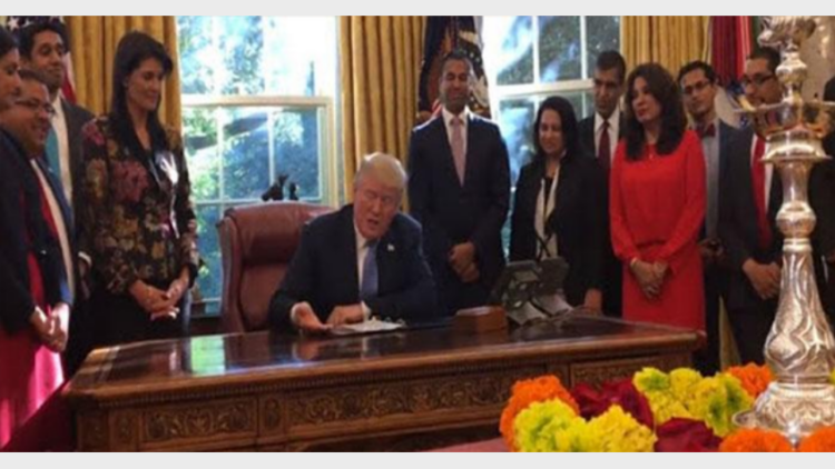 ട്രംപ് സ്ഥാനാര്ത്ഥിയായിരുന്ന കഴിഞ്ഞ വര്ഷത്തെ ദീപാവലി ദിനത്തില് മകള് ഇവാങ്ക വിര്ജീനിയയിലും ഫ്ലോറിഡയിലുമുള്ള ക്ഷേത്രങ്ങള് സന്ദര്ശിച്ചിരുന്നു. ന്യൂജേഴ്സിയില് ഇന്ത്യന് അമേരിക്കന് സംഘത്തിന്റെ പൊതു സമ്മേളനത്തില് പങ്കെടുത്തിരുന്നു.