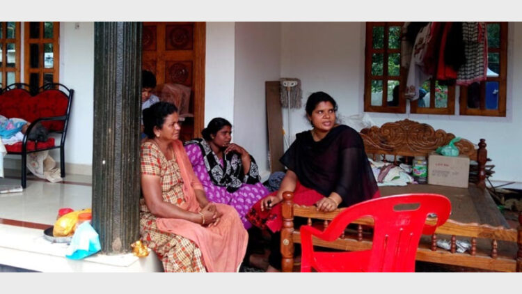 ഇടത് സര്‍ക്കാര്‍ പണിതുകൊടുത്ത വയനാട്ടിലെ വീടിന്‍റെ ചോര്‍ച്ച മന്ത്രി രാജന്‍ പരിശോധിക്കുന്നു (ഇടത്ത്)