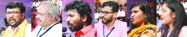 എബിവിപി മഹാറാലിയെ അഭിസംബോധന ചെയ്യുന്ന നേതാക്കളായ വിനയ് ബിദ്രെ, സുനില് അംബേദ്കര്, പി.ശ്യാംരാജ്, ഒ.നിധീഷ്, മഹാമേധാ നാഗര്, നീതി ത്രിപാഠി എന്നിവര്