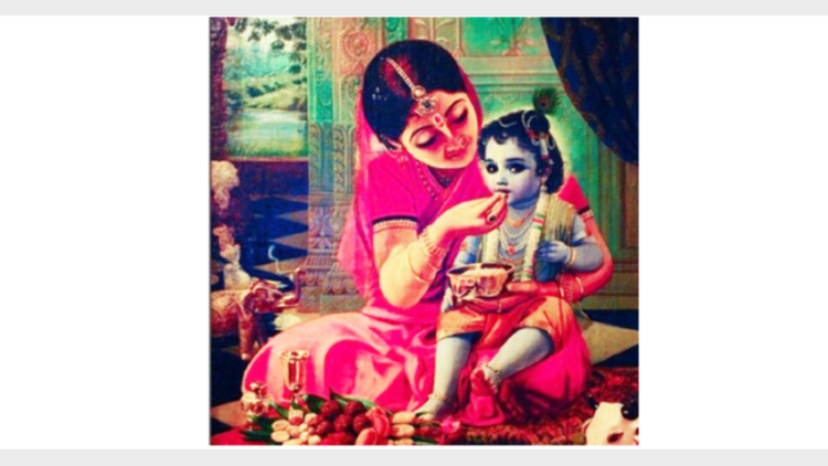 വൃന്ദാവനത്തിലെത്തിയ നന്ദനെ എതിരേറ്റത് ഒരദ്ഭുതവാര്ത്തയാണ്. രണ്ടു ദിവസം മുന്നേ, കീര്ത്തി കാളിന്ദിയില് കുളിക്കാന് പോയി. കുളിച്ചുകൊണ്ടിരിക്കേ, ഒരു കുഞ്ഞ് ഓളപ്പരപ്പിലൂടെ ഒഴുകിവരുന്നതുകണ്ടു. അവര് നീന്തിച്ചെന്നു; കുഞ്ഞിനെയെടുത്തു. ഒരു പെണ്കുഞ്ഞ്.