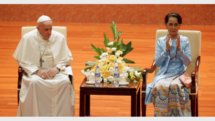 ഇന്നലെ മ്യാന്മര് പ്രധാനമന്ത്രി അങ്ങ്സാന് സൂകിയെ സന്ദര്ശിച്ച ശേഷമായിരുന്നു മാര്പ്പാപ്പയുടെ പ്രസംഗം. ഐക്യവും സഹിഷ്ണുതയും പുലര്ത്തേണ്ടതിന്റെ ആവശ്യകത എടുത്തു പറഞ്ഞ അദ്ദേഹം പക്ഷേ റോഹിങ്ക്യന് മുസ്ലീങ്ങളെപ്പറ്റി ഒന്നും പറഞ്ഞില്ല. രാജ്യം ആഭ്യന്തര സംഘര്ഷം അനുഭവിക്കുകയാണെന്നും വര്ഷങ്ങള് നീണ്ട ശത്രുത സമൂഹത്തില് കടുത്ത ഭിന്നതയുണ്ടാക്കിയിട്ടുണ്ടെന്നും മാര്പ്പാപ്പ പറഞ്ഞു. മ്യാന്മറിന്റെ ഭാവി സമാധാനപരമാകണം. വംശീയ സമൂഹങ്ങളുടെ അവകാശങ്ങളും അന്തസും കാത്തു സ