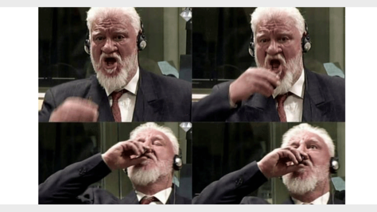 2013ല് പ്രല്ജാക്കിന് 20 വര്ഷം തടവ് ശിക്ഷ വിധിച്ചിരുന്നു. അതിനെതിരേ അന്താരാഷ്ര്ടകോടതിയില് നല്കിയ അപ്പീല്ഹര്ജിയില് വിധി പറയുന്നതിനിടെയാണ് സംഭവം. ശിക്ഷകേള്ക്കുന്നതിനിടെ എഴുന്നേറ്റ് കൈയില് കരുതിയിരുന്ന വിഷദ്രാവകം കഴിക്കുകയായിരുന്നു.