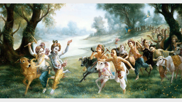 നന്ദരാജനേയും പരിവാരങ്ങളേയും സ്വീകരിക്കാന്‍ വൃന്ദാവനം കാത്തുനില്‍പ്പായിരുന്നു. വൃന്ദാവനവാസികളുടെ മുന്‍നിരയില്‍ സൂചന്ദ്രനുണ്ട്, കീര്‍ത്തിയുണ്ട്, ആ ദമ്പതികളുടെ വളര്‍ത്തുമകള്‍ രാധയുണ്ട്. അവര്‍ അകലെനിന്നു കേട്ടു- പെയ്‌തെത്തുന്ന പേമാരിയുടെ ആരവംപോലെ, ജനസഹസ്രങ്ങളുണര്‍ത്തുന്ന കോലാഹല ധ്വനികള്‍…