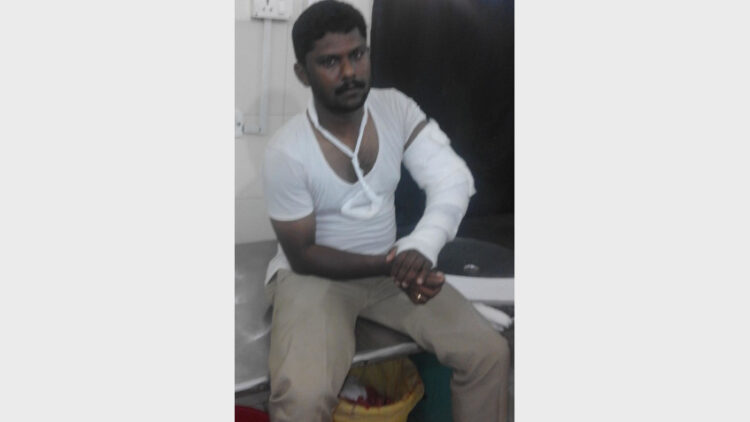 എആര്‍ ക്യാമ്പില്‍നിന്നും കണ്‍ട്രോള്‍ റൂം പോലീസ് വാഹനത്തിലെ ഡ്രൈവര്‍ ശിവപ്രശാന്തി(36)നാണ് പരിക്ക് പറ്റിയത്. സംഭവവുമായി ബന്ധപ്പെട്ട് ചവറ കെഎംഎംഎല്‍ കമ്പനിയിലെ താല്‍ക്കാലിക സുരക്ഷ ഉദ്യോഗസ്ഥന്‍ തഴവ തിനാവില്‍ വീട്ടില്‍ ബിനുമോനെ(40) പോലീസ് പിടികൂടി. ദേശീയപാതയില്‍ ഇടപ്പള്ളിക്കോട്ട ജംഗ്ഷന് സമീപം ഇന്നലെ വൈകിട്ട് 4.30നാണ് സംഭവം. പൊലീസ് വാഹനപരിേശാധന നടത്തുന്നതിനിടെ നിര്‍ത്താതെ പോകാന്‍ ശ്രമിച്ച ബൈക്ക് തടയാന്‍ ശ്രമിക്കുന്നതിനിടെ ശിവപ്രശാന്തിനെ ബൈക്ക് ഇടിച്ചിട്ടശേഷം വാഹനം നിര്‍ത്താതെ ബിനുമോന്‍ കടന്നുകളഞ്ഞു. ഇടതുകൈക്ക് ഗുരുതരമായി പരിക്കേറ്റ ശിവപ്രശാന്തിനെ മറ്റുള്ള പോലീസുകാര്‍ കരുനാഗപ്പള്ളി താലൂക്ക് ആശുപത്രിയിലേക്ക് മാറ്റി. ശിവപ്രശാന്തിനെ ആശുപത്രിയിലേക്ക് കൊണ്ടുപോകും വഴി കുറ്റിവട്ടത്തുനിന്നും ബിനുമോനെ ബൈക്ക് സഹിതം പിടികൂടുകയായിരുന്നു. ചവറ പോലീസ് കേസെടുത്തു.