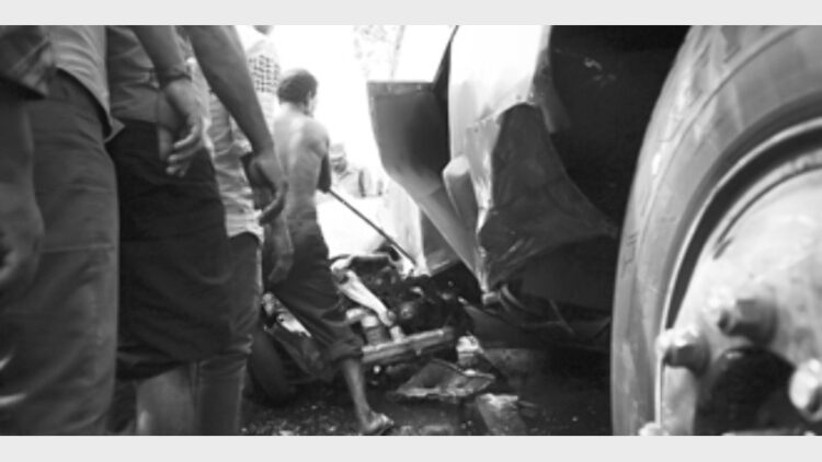 കെഎസ്ആര്ടിസി ബസ് കണ്ടക്ടര് കൊട്ടിയം സ്വദേശി സന്തോഷ്കുമാര് (40), കാര്ഡ്രൈവര് ബാരി (58) എന്നിവര്ക്കാണ് പരിക്കേറ്റത്. ഇവരെ ഹൈവേ പോലീസും നാട്ടുകാരും ചേര്ന്നു പാരിപ്പള്ളി മെഡിക്കല് കോളേജില് എത്തിക്കുകയായിരുന്നു. കൊല്ലത്തുനിന്നും തിരുവനന്തപുരത്തേക്ക് പോകുകയായിരുന്ന ഫാസ്റ്റ് പാസഞ്ചര് ബസിനെ ഓവര്ടേക്ക് ചെയ്യുന്നതിനിടയില് കെഎല് 02 എ ഡി 9725 മാരുതി ആള്ട്ടോകാറാണ് അപകടത്തില്പ്പെട്ടത്. കാറില് ഒരാള് മാത്രമേ ഉണ്ടായിരുന്നുള്ളൂ. ഫാസ്റ്റില് തട്ടി നിയന്ത്രണം വിട്ട കാര് എതിരെവന്ന കൊട്ടിയം വേണാട് ബസിലിടിച്ച ശേഷം വീണ്ടും ഫാസ്റ്റില് ഇടിച്ചുകയറുകയായിരുന്നു. രണ്ടാമത്തെ ഇടയില് ഫാസ്റ്റിന്റെ ഡീസല് ടാങ്ക് പൊട്ടി ദേശീയപാതയില് ഒഴുകി. കാര് ഇരു ബസുകളുടെയും ഇടയില് കുടുങ്ങിയ അവസ്ഥയിലായിരുന്നു. പാരിപ്പള്ളി പോലീസും സ്ഥലത്തെത്തിയിരുന്നു. നാട്ടുകാരും പോലീസും ചേര്ന്ന് കാര് റോഡരികിലേക്ക് മാറ്റി. അഗ്നിശമനസേന എത്തി ഡീസല് കഴുകിയ ശേഷമാണ് ഗതാഗതം പുനസ്ഥാപിച്ചത്.
