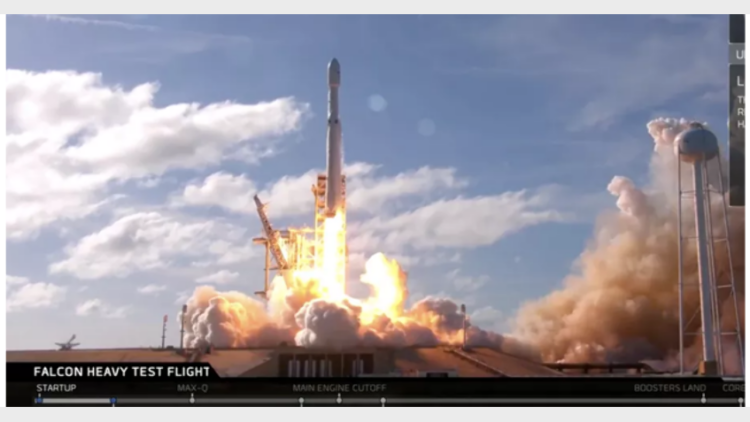 കമ്പനിയുടെ സിഇഒ എലോണ് മസ്കിന്റെ ടെസ്ല കാര് പ്ലെലോഡായി ഫാല്ക്കണ് ഹെവിക്കൊപ്പം വിക്ഷേപിച്ചു. കാറിന്റെ ഡ്രൈവിങ് സീറ്റില് ബഹിരാകാശയാത്രികന്റെ വേഷം അണയിച്ച് മോഡലിനെ വച്ചിച്ചിരുന്നു. ഡേവിഡ് ബോവിയുടെ സംഗീതം ബഹിരാകാശത്തു കേള്പ്പിക്കാനുള്ള സംവിധാനവും ഏര്പ്പെടുത്തിയിരുന്നു. സൂര്യനു പുറത്തുള്ള ഭ്രമണപഥത്തില് വെച്ച് ടെസ്ല കാറിനെ ഫാല്ക്കണില് നിന്ന് മോചിപ്പിച്ചു. ചൊവ്വ ഗ്രഹത്തിനടുത്തു വരെ കറങ്ങിയതിനു ശേഷം റോക്കറ്റുകള്ക്കൊപ്പം കാറിനേയും ഭൂമിയില് തിരിച്ചെത്തിച്ചു.