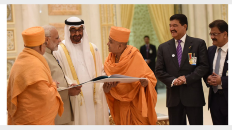 യുഎഇയുടെ തലസ്ഥാനമായ അബുദാബിയില്‍ ഇന്ത്യന്‍ വംശജരായ മുപ്പതു ലക്ഷം പേരുണ്ട്. നിര്‍ദ്ദിഷ്ട ക്ഷേത്രം ഇന്ത്യന്‍ ശില്‍പ്പികള്‍ ഇന്തയില്‍ നിര്‍മ്മിച്ച് ഇവിടെ എത്തിച്ച് കൂട്ടിച്ചേര്‍ക്കുകയായിരിക്കും. 2020 ല്‍ ക്ഷേത്ര നിര്‍മ്മാണം പൂര്‍ത്തിയാക്കും. അബുദാബിയില്‍ ഇങ്ങനെയൊരു ക്ഷേത്ര നിര്‍മ്മാണത്തിന് അനുമതി നല്‍കി, സഹായം നല്‍കുന്ന യുഎഇ രാജവംശത്തിന് ഇന്ത്യയിലെ 125 കോടി ജനങ്ങളുടെ പേരില്‍ നന്ദിയും സന്തോഷവും അറിയിക്കുന്നതായി മോദി പറഞ്ഞു.