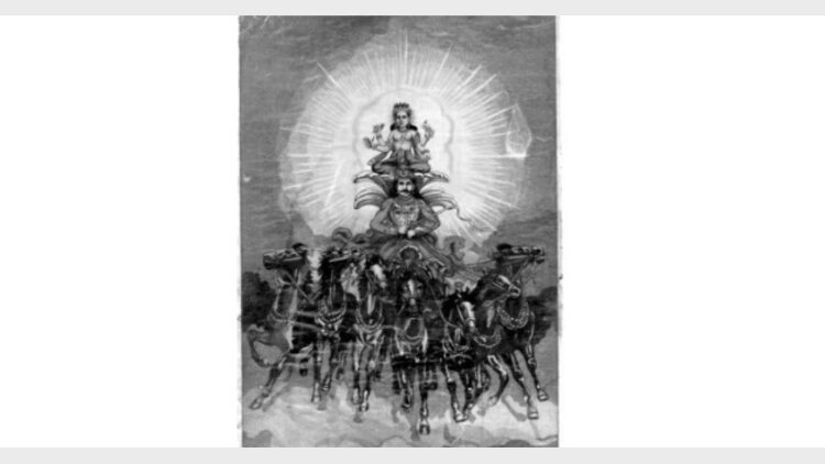 അവിടെ ഒരിക്കലും സൂര്യന് ഉദിക്കുകയോ അസ്തമിക്കുകയോ ചെയ്തിട്ടില്ല. ദേവന്മാരെ… ഈ സത്യം കൊണ്ട് ഞാന് ബ്രഹ്മത്തില് നിന്നും ഭ്രഷ്ടനാവാതിരിക്കട്ടെ. എന്റെ വാക്ക് സത്യമാണ് എന്നര്ത്ഥം.