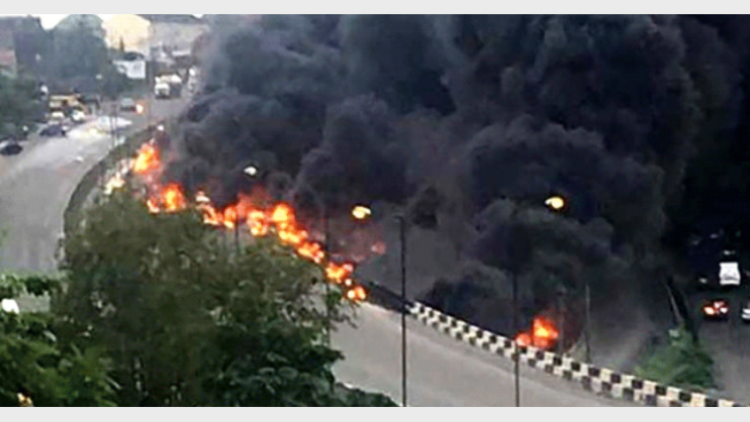 ലാഗോസ്-ബഡാന്‍ പാതയില്‍ പ്രദേശിക സമയം വൈകുന്നേരം അഞ്ചിനായിരുന്നു അപകടം. ഒരു കാറുമായി കൂട്ടിയിടിച്ച ശേഷം ടാങ്കറിന് തീപിടിക്കുകയായിരുന്നു. തിരക്കേറിയ പാലത്തില്‍ വച്ചാണ് അപകടമുണ്ടായത്. മരണസഖ്യ ഉയരാനുള്ള സാധ്യതയുണ്ട്.