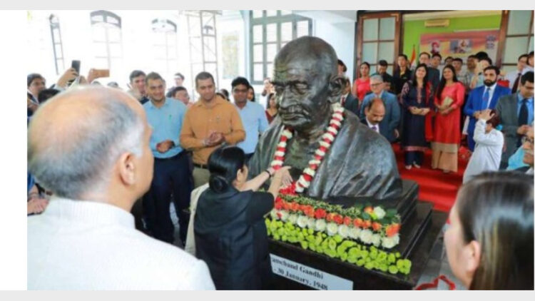 ഹാനോയ്; വിയറ്റ്നാം തലസ്ഥാനമായ ഹാനോയിയില് വിദേശകാര്യമന്ത്രി സുഷമ സ്വരാജ് മഹാത്മാഗാന്ധിയുടെ അര്ദ്ധകായ പ്രതിമ അനാഛാദനം ചെയ്തു. ഇന്ത്യന് എംബസിക്കു മുന്നിലാണ് പ്രതിമ സ്ഥാപിച്ചിരിക്കുന്നത്. നാലു ദിവസത്തെ തെക്കനേഷ്യന് സന്ദര്ശനത്തിന്റെ ഭാഗമായാണ് സുഷമ വിയറ്റ്നാമില് എത്തിയത്.