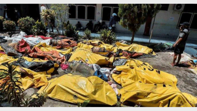 വെള്ളിയാഴ്ചയാണ് 7.5 രേഖപ്പെടുത്തിയ ഭൂകമ്പത്തെതുടര്‍ന്ന് കടലോര നഗരമായ പാലുവില്‍ സുനാമിയുണ്ടായത്. കടല്‍തീരത്ത് പകുതി മണ്ണില്‍ മൂടിയ മൃതദേഹങ്ങള്‍ കണ്ടതായി റിപ്പോര്‍ട്ടുകളുണ്ട്. ഒട്ടേറെ വീടുകള്‍ ഒഴുകിപ്പോയി. ദുരന്തത്തില്‍ 384 പേര്‍ മരിച്ചതായി സ്ഥിരീകരിച്ചതായി ദുരന്ത നിവാരണ ഏജന്‍സി അറിയിച്ചു. ദുരന്തബാധിതമായ ചില പ്രദേശങ്ങളിലേക്ക് രക്ഷാപ്രവര്‍ത്തകര്‍ക്ക് ഇതുവരെ എത്താന്‍ കഴിഞ്ഞിട്ടില്ല.